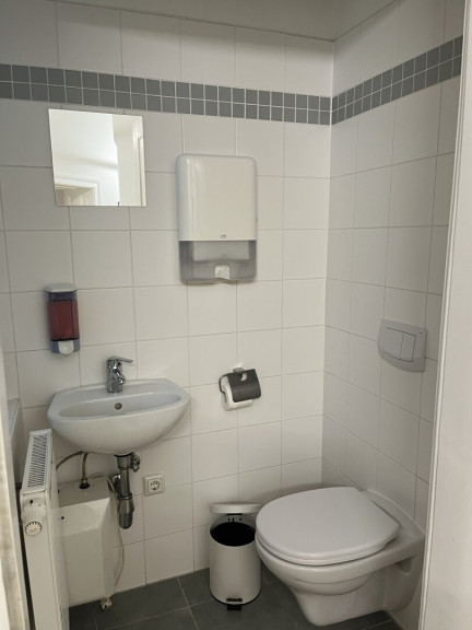 Alle Büroräume sind mit Parkettboden ausgestattet und sorgen für eine angenehme Arbeitsatmosphäre. Die Nassräume sind mit Fliesen versehen. Das Büro ist mit getrennten WCs, einer praktischen Teeküche und einem Abstellräumen ausgestattet. Zudem verfügt das Büro über ein Badezimmer.