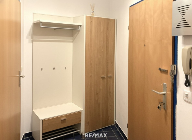 Praktischer Stauraum: Ein Schrankraum und ein Abstellraum bieten nützlichen Platz für Kleidung und Haushaltsutensilien.