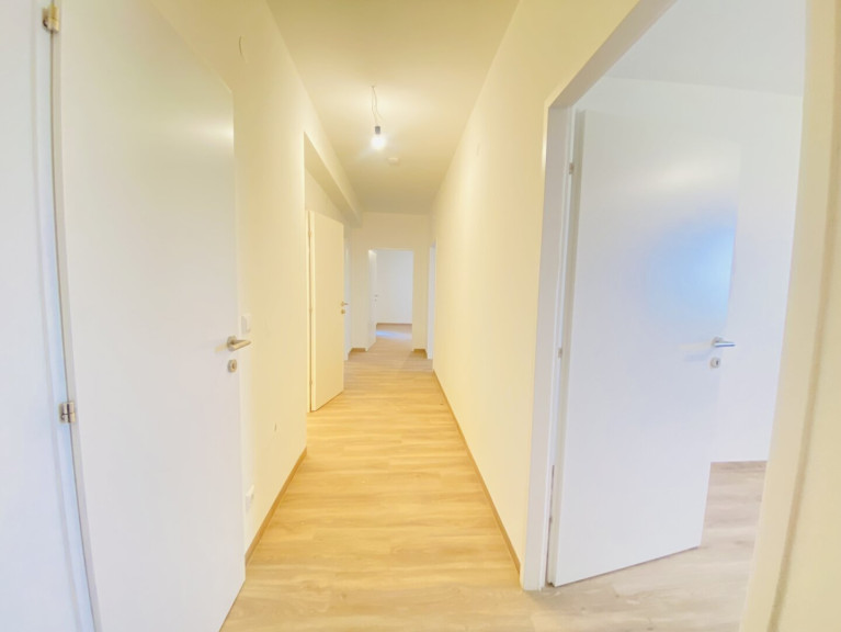 Die Wohnung gliedert sich in ein großzügiges Vorzimmer mit Garderobe, eine Einbauküche mit gemütlichem Essbereich sowie einen praktischen Abstellraum. Der geräumige Wohnbereich bietet direkten Zugang zur ersten Loggia. Die drei großzügigen Schlafzimmer, von denen eines ebenfalls einen Zugang zur Loggia hat, laden zum Entspannen ein. Das Badezimmer ist mit einer komfortablen Badewanne ausgestattet sowie einer separate Toilette.
