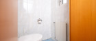 Für zusätzlichen Komfort sorgt eine elektrische Markise neben der Eingangstür, die auf der westseitigen Terrasse angenehmen Schatten spendet und den Außenbereich an warmen Tagen perfekt ergänzt.