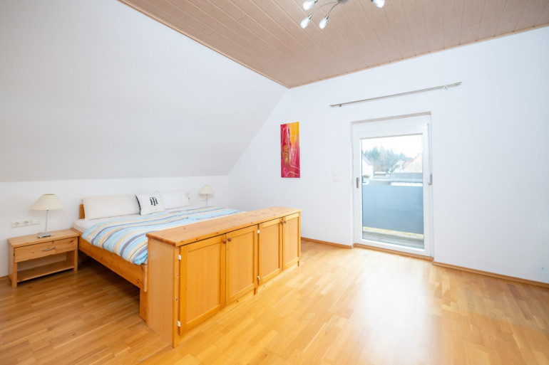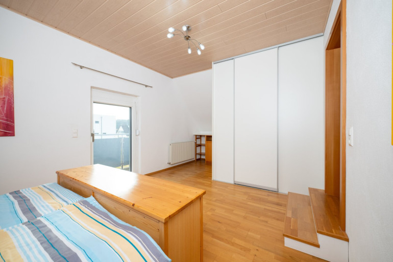 Auf der gegenüberliegenden Seite des Erdgeschosses befindet sich ein weiterer Raum, der zuletzt als Wohnbereich genutzt wurde, sich jedoch ebenso hervorragend als Schlafzimmer eignet. Zusätzlich steht Ihnen hier ein Schlafzimmer mit Ostfenster zur Verfügung — ideal als Eltern-, Gäste- oder Arbeitszimmer.