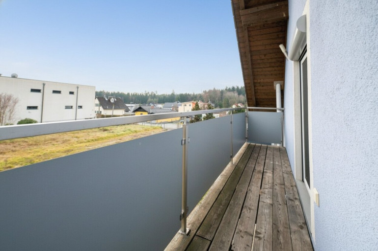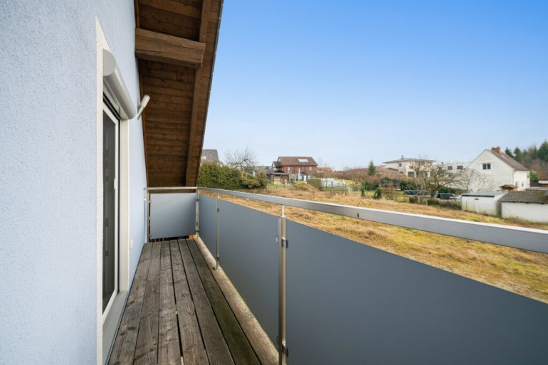 Der Südbalkon ist über eine Balkontür zugänglich; aufgrund der niedrigen Einbauhöhe empfiehlt sich hier ein Austausch bzw. eine bauliche Anpassung, um den Zugang komfortabler zu gestalten.