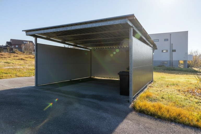 Eine praktische Gartenhütte bietet wertvollen Stauraum für Gartengeräte, Fahrräder oder saisonale Ausstattung. Das 30 m² große, überdachte Carport schützt Ihr Fahrzeug zuverlässig und ermöglicht bequemes Ein- und Aussteigen – zu jeder Jahreszeit.