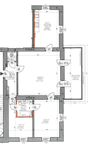 Die Wohnung befindet sich im 1. Lifstock, hat eine Fläche von ca. 90qm und eine wunderschönen Balkon mit ca. 15qm.