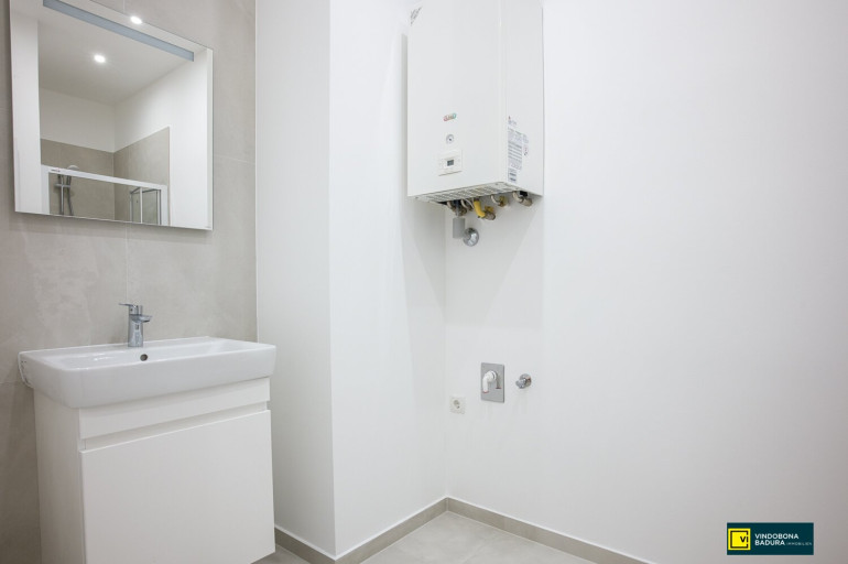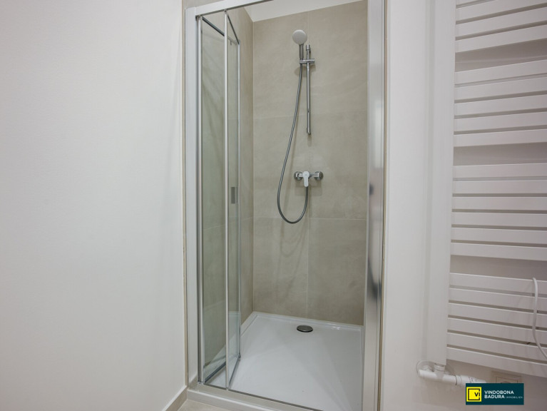 - Badezimmer mit Dusche, Waschmaschinenanschluss & Handtuchtrockner