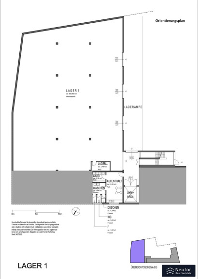 Betriebskosten: ca. € 1,20/m² als Lagerfläche / € 2,00.-/m² als Bürofläche