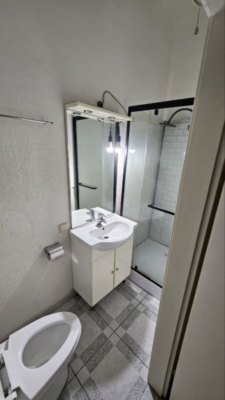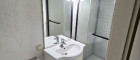 • Bad mit Dusche, Waschtisch, Spiegel und WC