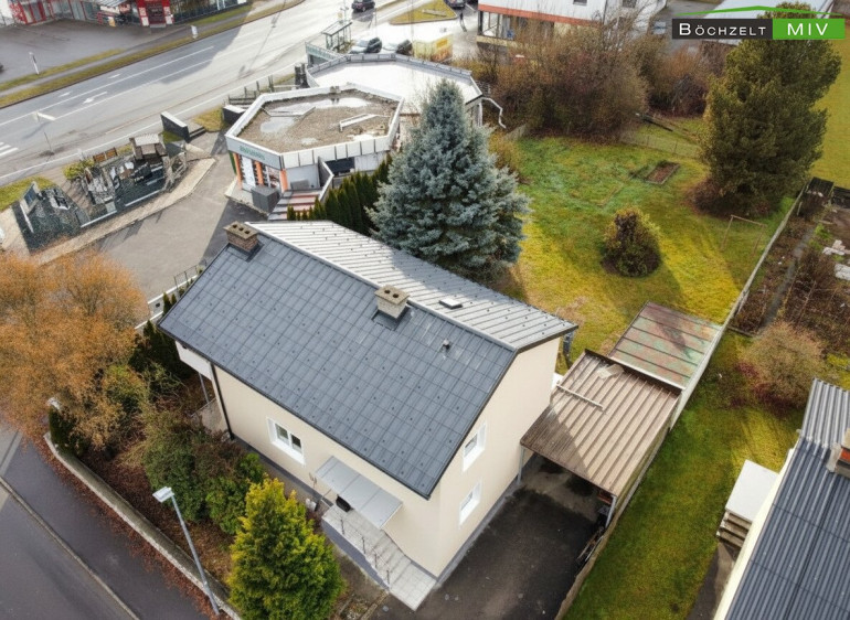Das Hausmit seinen knapp 133 m² Wohnnutzfläche und ca. 64 m² Kellerfläche verteilt sich auf 3 Geschosse. Ursprünglich wurde das Haus, sowie das Nebengebäude 1960 errichtet und 2025 umfassend saniert. Der asphaltierte Außenbereich bietet Platz für weitere 2 - 3 Fahrzeuge zum Parken, teilweise unter Dach im Carport nördlich des Hauses. Anschließend an das Carport ist ein Abstellraum bzw. kleine Garage vorhanden mit ca. 12,24 m². Situiert im hinteren Bereich der Liegenschaft gibt es noch eine Gartenhütte im Ausmaß von ca. 7,18 m².
