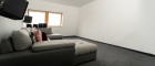 Über eine Treppe erreicht man die obere Etage der Maisonette. Der zentrale Gang führt rechterhand in das Badezimmer sowie in das erste große Schlafzimmer - ausgestattet mit einer hochwertigen Heimkinoanlage. Linkerhand befindet sich ein weiterer Abstellraum, der sich ideal als kleiner begehbarer Schrank eignet.