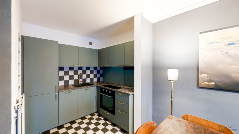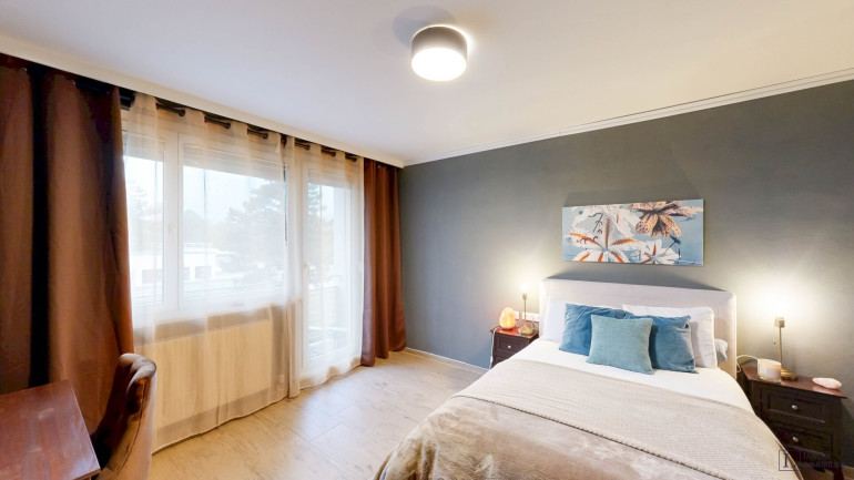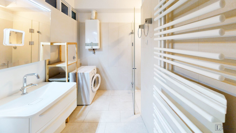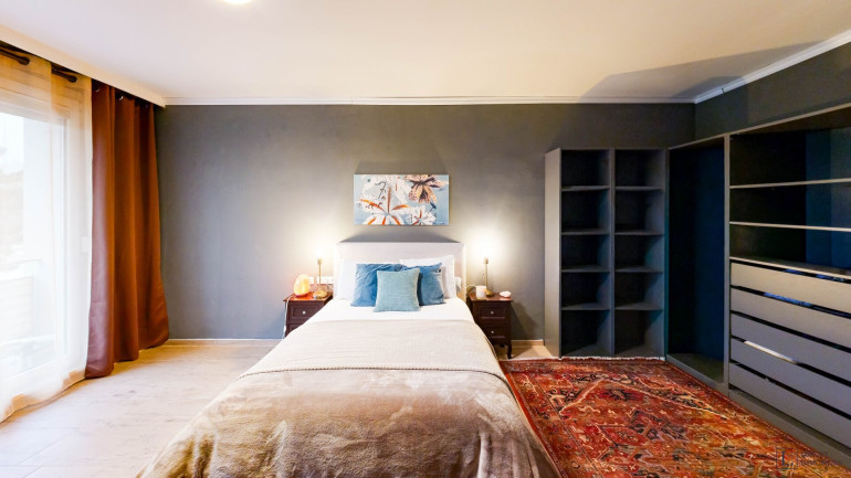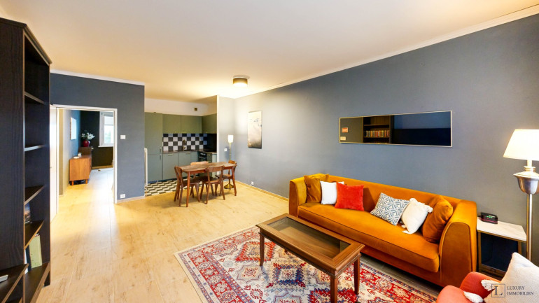 Die Wohnung verfügt über zwei helle Schlafzimmer, einen großzügigen Wohnbereich sowie eine hochwertige, voll integrierte Einbauküche mit Markengeräten von Whirlpool, Bosch u. a. Die neuen Möbel von Top-Qualität sind im Kaufpreis inbegriffen und unterstreichen den exklusiven Charakter der Immobilie. Ein sonniger Balkon mit ca. 9 m² rundet das Angebot mit einem beeindruckenden Ausblick ab.
