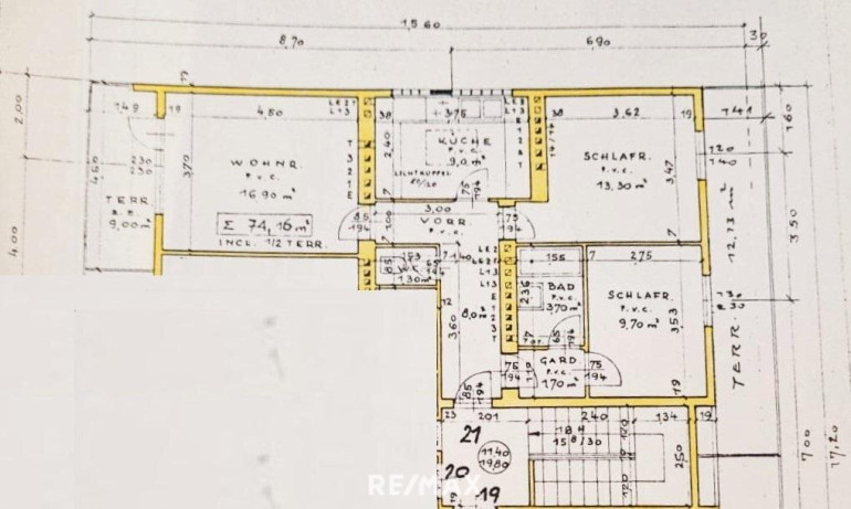 Dachgeschoß ohne Schrägen mit 2 Terrassen - sanierungsbedürftig