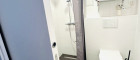 Modernes Badezimmer mit Fußbodenheizung, Dusche, Waschbecken und WC