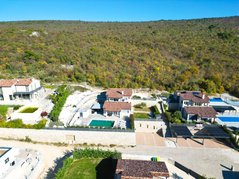 Inmitten einer der exklusivsten Villensiedlungen Istriens, erhebt sich diese außergewöhnliche Villa in der charmanten Ortschaft Stanišovi, unweit des historischen Städtchens Labin und der azurblauen Küste der Adria. Die Immobilie liegt in einer privaten, architektonisch harmonisch gestalteten Siedlung mit lediglich acht neu errichteten Villen, zu der ausschließlich die Eigentümer Zutritt haben. Die Zufahrt wird nach Abschluss aller Bauarbeiten durch ein elektrisches Eingangstor mit Fernbedienungssystem kontrolliert, wodurch höchste Diskretion und Sicherheit garantiert sind. Diese exklusive Wohnanlage befindet sich in ruhiger Hügellage und verbindet auf elegante Weise moderne Lebensqualität mit der Ursprünglichkeit der istrischen Natur. Die Umgebung besticht durch ihre mediterrane Vegetation, sanfte Hügellandschaften und einen unverbauten Blick bis zur türkisfarbenen Küste der Kvarner Bucht. Die Zufahrtswege werden hochwertig asphaltiert, was die infrastrukturelle Qualität der Siedlung zusätzlich unterstreicht. Die klare Architektur der Villen und das durchdachte Raumkonzept dieser Immobilie ermöglichen sowohl eine getrennte Nutzung zweier Wohneinheiten als auch die Zusammenlegung zu einem großzügigen Familienanwesen – ideal für Mehrgenerationennutzung oder als Investment in die Ferienvermietung. Die Lage in der Gemeinde Raša, einer geschichtsträchtigen Region Istriens, ist reich an kulturellen Einflüssen und landschaftlicher Vielfalt. Die Nähe zu Labin, einer Künstlerstadt mit venezianischem Charme, sowie zu den malerischen Stränden von Rabac oder der romantischen Altstadt von Pula, macht diese Immobilie zu einem strategisch klug gewählten Rückzugsort mit exzellentem Erholungswert. Stanišovi liegt gut angebunden, aber fernab des touristischen Trubels – ein Ort, der bewusst für Menschen geschaffen wurde, die Ruhe, Qualität und Privatsphäre suchen.