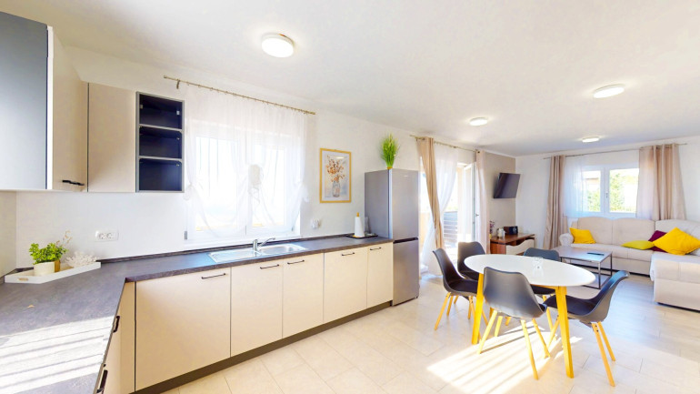In der charmanten Ortschaft Stanišovi präsentieren wir Ihnen eine äußerst gepflegte und modern ausgestattete Ferienwohnung mit einer Wohnfläche von 75,15 m², die sich ideal für Eigennutzer, Investoren oder als nachhaltige Ferienimmobilie eignet. Die Liegenschaft liegt in einer ruhigen Wohnumgebung und befindet sich auf einem großzügigen Grundstück von 670,5 m².