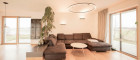 - Modern-minimalistische Architektur mit warmen Materialien und großzügigen Glasflächen