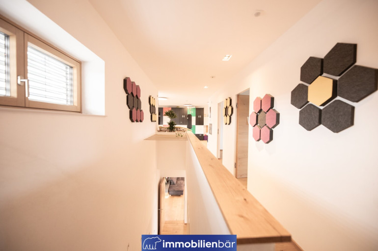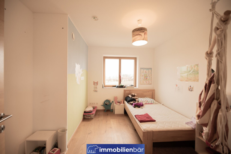 Am Ende einer ruhigen Sackgasse, wo nur Vogelgezwitscher den Tag begrüßt, liegt dieses moderne Einfamilienhaus in Puchberg. 2019 von der renommierten Baufirma Gerstl errichtet, vereint es klare Architektur, intelligente Haustechnik und wohnliche Atmosphäre – ideal für alle, die Ruhe suchen, aber die Nähe zur Stadt Wels schätzen. Mit rund 255 m² Wohnfläche, einem 1.040 m² großen Baugrund und zusätzlich 2.413 m² Grünland bietet die Liegenschaft Raum für Familie, Freizeit und Zukunftsideen.