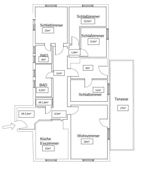 - 1 Elternschlafzimmer mit eigenem Badezimmer/WC (Fußbodenheizung)