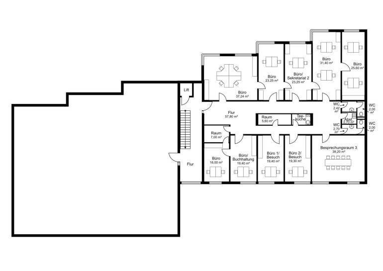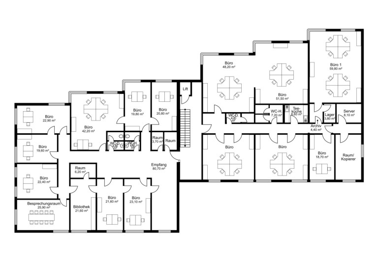 Die drei Büroeinheiten können einzeln oder gemeinsam angemietet werden - bisher wurden sie von einem Unternehmen (Int. Konzern) genutzt.