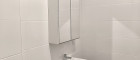 Bad mit Wanne, Sprossenheizkörper und elegantem Spiegelschrank