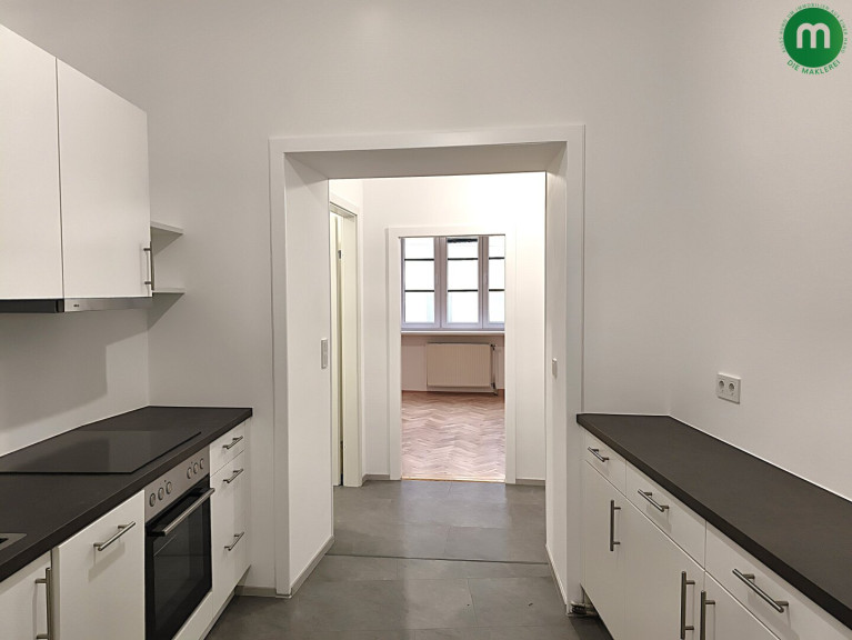 Die Wohnung bietet ein freundliches, helles Wohnzimmer mit südöstlicher Ausrichtung, ein geräumiges Schlafzimmer sowie eine moderne Einbauküche. Ein stilvolles Badezimmer mit Badewanne, das separate WC mit Handwaschbecken sowie der praktische Abstellraum steuern zusätzlichen Wohnkomfort bei. Ein Kellerabteil ist ebenfalls vorhanden. Der klassische Altbau-Charme wurde durch die kürzlich durchgeführte Sanierung perfekt mit zeitgemäßem Wohnen kombiniert.