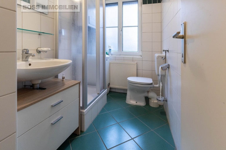 Fliesen, Parkett, Gas, Etagenheizung, Einbauküche, Bad mit Fenster, Dusche, Parkplatz