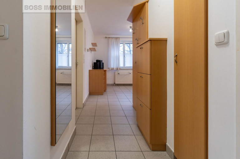 Sie befindet sich 1. Obergeschoss eines Wohnhauses mit nur 6 Parteien. Die Wohnung verfügt über ein gemütliches Wohnzimmer, ein Schlafzimmer und eine großzügige und zeitlos eingerichtete Küche. Alle Räume sind möbliert und die Einrichtung ist Bestandteil der Wohnung, Diese wird monatlich mit vermietet.