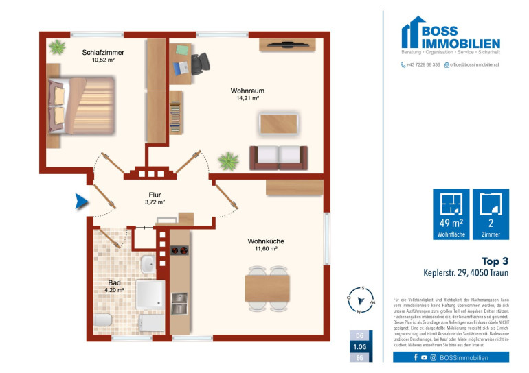 Diese freundliche 2-Raumwohnung befindet sich in einer ruhigen Siedlungslage, im Trauner Stadtteil St. Dionysen.