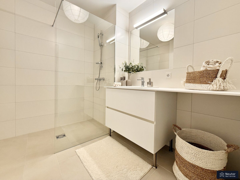Ein weiteres Plus dieses exklusiven Neubaus: Den zukünftigen Bewohner:innen stehen Garagenstellplätze mit Elektroladestationen zur Verfügung. Für nachhaltige Mobilität ist ebenfalls gesorgt – ein großzügiger Fahrradabstellraum mit der Möglichkeit, E-Bikes zu laden, ist Teil des durchdachten Gesamtkonzepts. Die Fertigstellung und Bezugsbereitschaft des Projekts ist für 01. Mai 2026 geplant. Die energieeffiziente Bauweise, Fußbodenheizung sowie eine moderne Haustechnik sorgen ganzjährig für ein angenehmes Wohnklima. Beheizt wird das Gebäude über eine nachhaltige Luftwärmepumpe, die in den Sommermonaten zusätzlich eine angenehme Temperierung ermöglicht. Ergänzt wird das durchdachte Energiekonzept durch eine Photovoltaikanlage am Dach, die zur umweltfreundlichen Stromerzeugung beiträgt und dabei hilft, die Stromkosten der Allgemeinteile zu optimieren. Im Badezimmer unterstreicht ein maßgefertigter Unterbauschrank in hochwertiger Tischlerarbeit den hohen Ausstattungsstandard des Projekts.