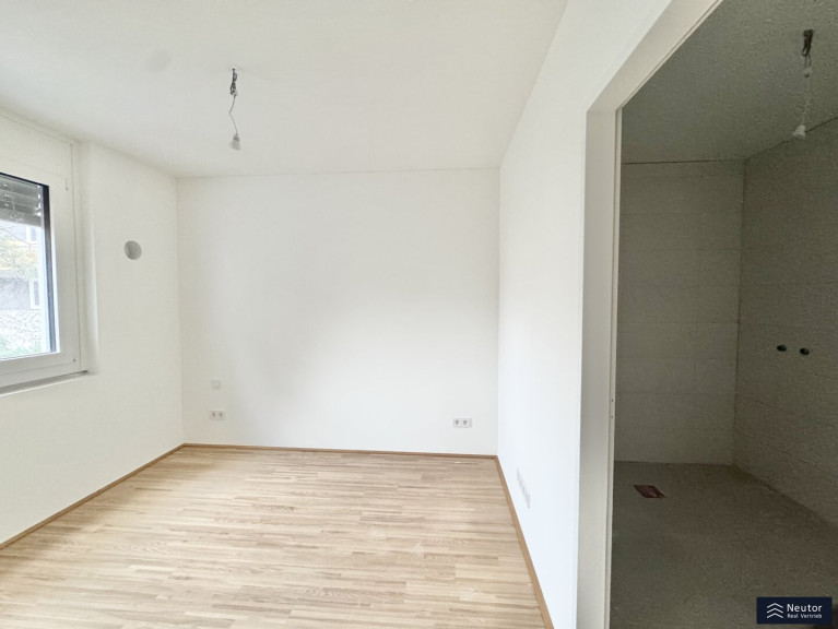 Ein weiteres Plus dieses exklusiven Neubaus: Den zukünftigen Bewohner:innen stehen Garagenstellplätze mit Elektroladestationen zur Verfügung. Für nachhaltige Mobilität ist ebenfalls gesorgt – ein großzügiger Fahrradabstellraum mit der Möglichkeit, E-Bikes zu laden, ist Teil des durchdachten Gesamtkonzepts. Die Fertigstellung und Bezugsbereitschaft des Projekts ist für 01. Mai 2026 geplant. Die energieeffiziente Bauweise, Fußbodenheizung sowie eine moderne Haustechnik sorgen ganzjährig für ein angenehmes Wohnklima. Beheizt wird das Gebäude über eine nachhaltige Luftwärmepumpe, die in den Sommermonaten zusätzlich eine angenehme Temperierung ermöglicht. Ergänzt wird das durchdachte Energiekonzept durch eine Photovoltaikanlage am Dach, die zur umweltfreundlichen Stromerzeugung beiträgt und dabei hilft, die Stromkosten der Allgemeinteile zu optimieren. Im Badezimmer unterstreicht ein maßgefertigter Unterbauschrank in hochwertiger Tischlerarbeit den hohen Ausstattungsstandard des Projekts.