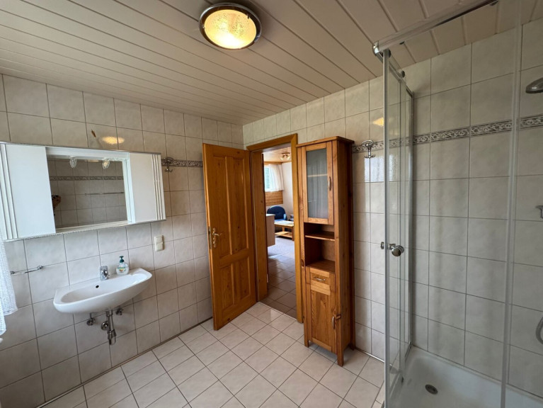 - Badezimmer mit Dusche, Waschtisch, Bidet und Wc