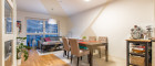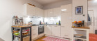 Der lichtdurchflutete Wohn-, Ess- und Kochbereich verfügt sowohl über eine moderne und komplett ausgestattete Küche als auch über einen Zugang zum sonnigen, südöstlich ausgerichteten Freifläche mit insgesamt ca. 7,27m².