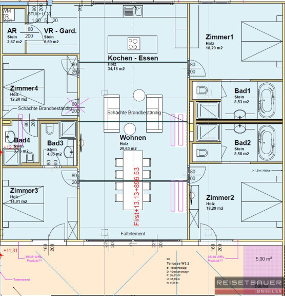 Ein besonderes Highlight ist die nach Südwesten ausgerichtete Terrasse mit Sauna, die den ganzen Tag über Sonne bietet. Der knapp 54 m² große Wohn-/Essbereich mit seinen großzügigen Fensterfronten verfügt über eine hochwertige Küche. Die vier Schlafzimmer besitzen jeweils ein eigenes, angrenzendes Badezimmer. Zusätzlich gibt es einen Waschmaschinenanschluss sowie ein Gäste-WC. Die Möblierung der Immobilie ist äußerst geschmackvoll und stimmig.