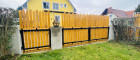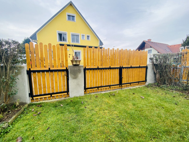 Im Frühjahr 2025 wurde ein lackierter Holzlattenzaun mit Gartentor und kleiner Gartentür errichtet. Das Eckgrundstück bietet zudem zwei separate Einfahrtstore sowie eine gepflegte Grünanlage.