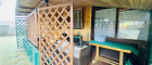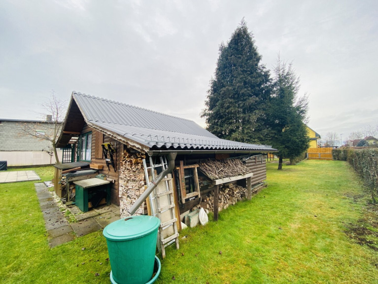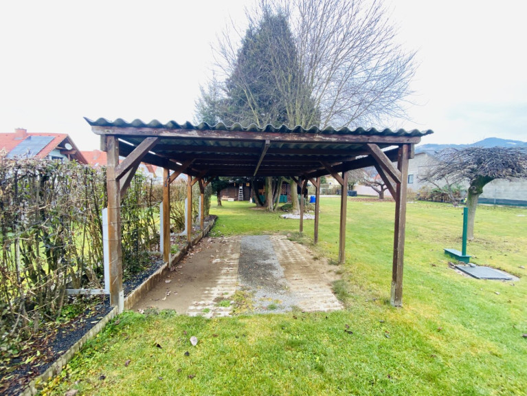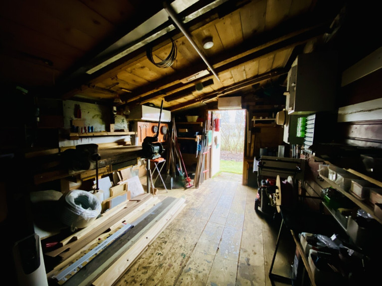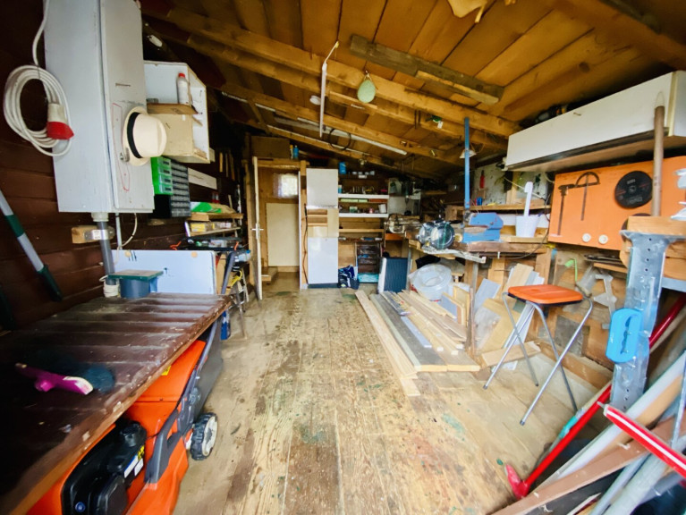 - Bestehende Gartenhütte, Werkstatt und Carport