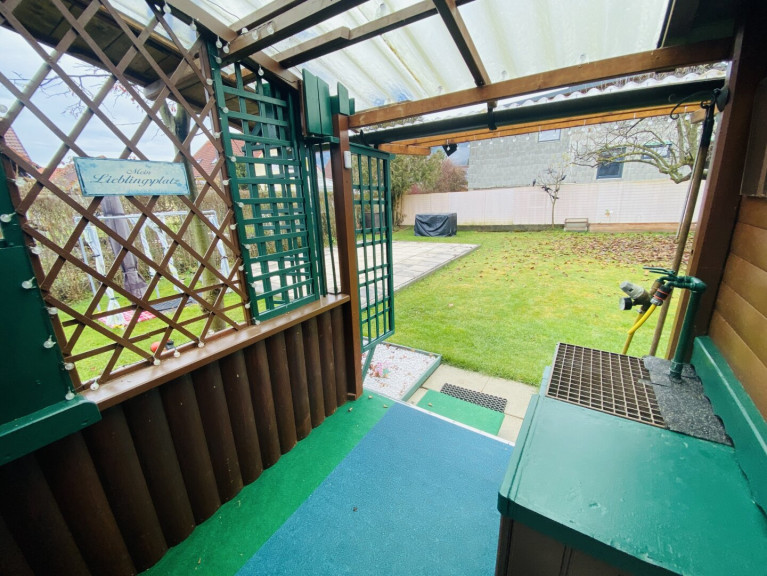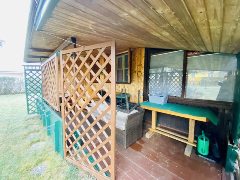 Auf dem Grundstück befindet sich ein charmantes Holz-Gartenhaus, das überraschend viel Platz und Komfort bietet. Die gepflegte Außenanlage sowie ein praktisches Carport runden das Gesamtbild ab. Damit lässt sich das Grundstück sofort als Feriendomizil, Freizeitgarten oder Schrebergarten nutzen.