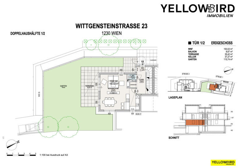 In der idyllischen Wittgensteinstraße 23 entsteht eine stilvolle 4-Zimmer-Zweifamilienvilla auf zwei Ebenen mit rund 153 m² Wohnfläche, einer großzügigen Terrasse, einem privaten Garten sowie einer Dachterrasse. Die Architektur vereint klassisches Wiener Villenflair mit moderner Eleganz – ideal für Familien und Paare, die Ruhe, Stil und höchste Wohnqualität schätzen.
