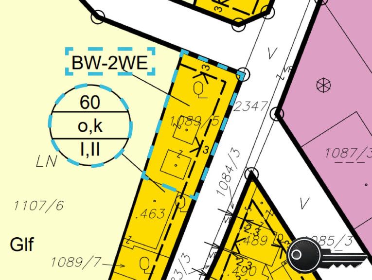 Die Grundstücksfläche von 392 m² ist kompakt, bietet allerdings durch die großzügugen Bebauungsbestimmungen viele Möglichkeiten, siehe Bebauungsplan. Bis zu 235 m² Fläche dürfen theoretisch verbaut und zwei Stockwerke (Bauklasse II) errichtet werden! Ob Sie ein großes, gemütliches Einfamilienhaus, einen Bungalow ein modernes Doppelhaus bauen oder ein Konzept mit einer Einlegerwohnungen (mit separatem Zugang) umsetzen wollen– hier sind Ihrer Kreativität keine Grenzen gesetzt. Es sind zwei selbständige Wohneinheiten erlaubt.