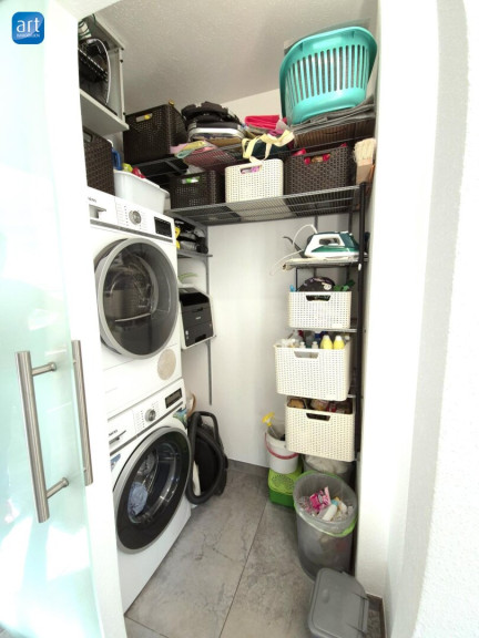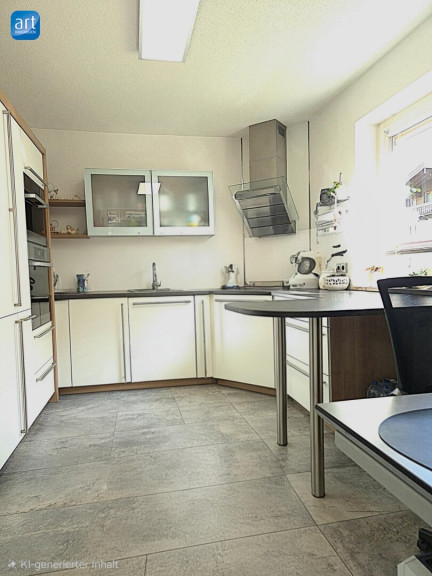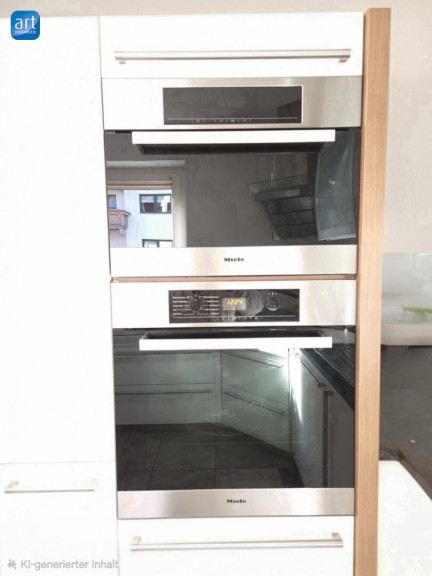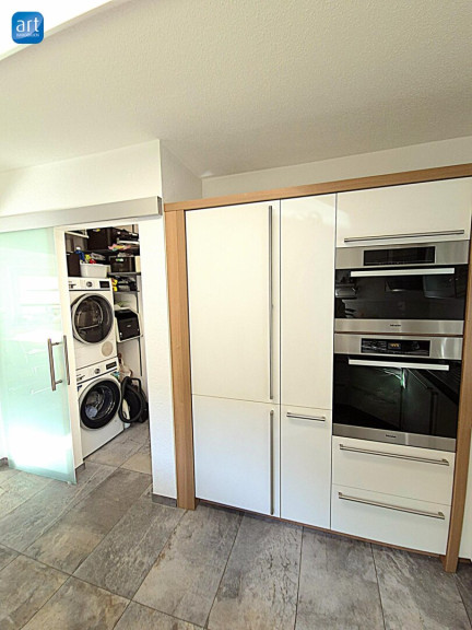 KÜCHE: Boden gefliest. Hochwertige, maßgefertigte Einbauküche mit Miele-Elektrogeräten. In einem an die Küche angrenzenden GROSSEN ABSTELLRAUM ist u.a. die Waschmaschine und der Trockner genial unter gebracht.