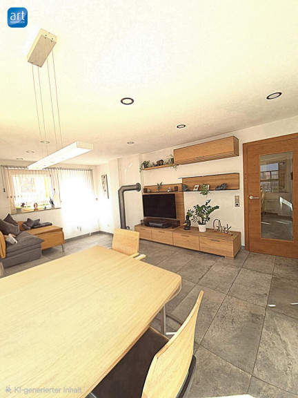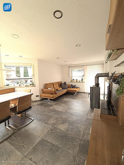 WOHN-/ESSBEREICH: Boden gefliest. Dieser ist mit einem Dänischen Ofen ausgestattet, der in der kalten Jahreszeit gemütliche Wärme spendet. Zudem befindet sich hier der Zugang zur großzügigen Terrasse.