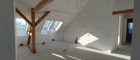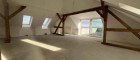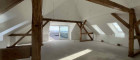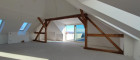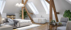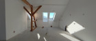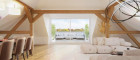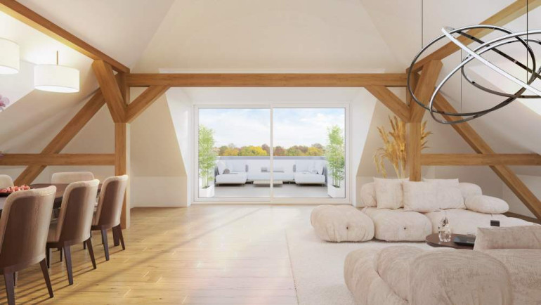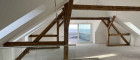 Sichtbare historische Dachstuhl-Balken, sorgfältig restauriert