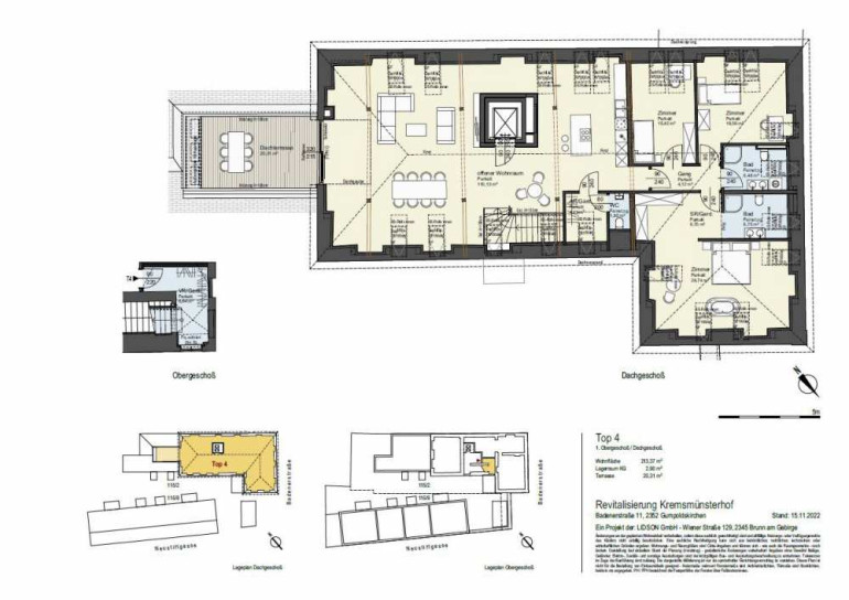 Der Kremsmünsterhof – erstmals im 15. Jahrhundert urkundlich erwähnt – diente über Jahrhunderte als Winzerhaus. Im Rahmen einer umfassenden Revitalisierung wurde das Gebäudeensemble behutsam transformiert: historische Bausubstanz wurde erhalten, jüngere Anbauten entfernt und ein moderner Neubau harmonisch integriert. Ergebnis ist ein hochwertiges Wohnprojekt, das Geschichte und zeitgemäßes Wohnen miteinander verbindet.