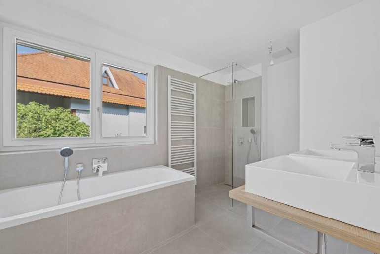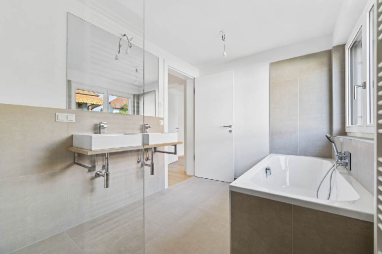 Die Liebe zum Detail zieht sich durch alle Bereiche und basiert auf ausgewählten Materialien und hochwertigen Markenprodukten. Elegante Parkettböden in allen Wohn- und Schlafräumen, Innentüren weiß matt mit Holzzarge bzw. Glastüren, großzügige Terrasse im Erdgeschoß mit Kaltwasseranschluss und Außenbeleuchtung, Terrasse im Dachgeschoß mit beeindruckender Aussicht, großformatige Fliesen (60 x 60 cm) in den Sanitärbereichen, Badewannen mit Markenarmaturen, bodenbündige Duschen, sämtliche Häuser werden vollständig mit Raffstores ausgestattet und noch vieles mehr...
