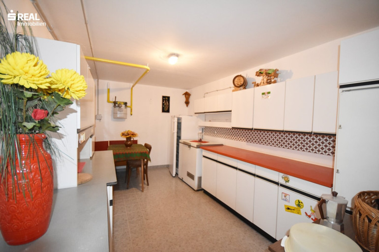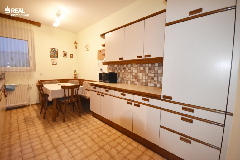 - funktionelle Küche mit Einbaugeräten älteren Baujahrs