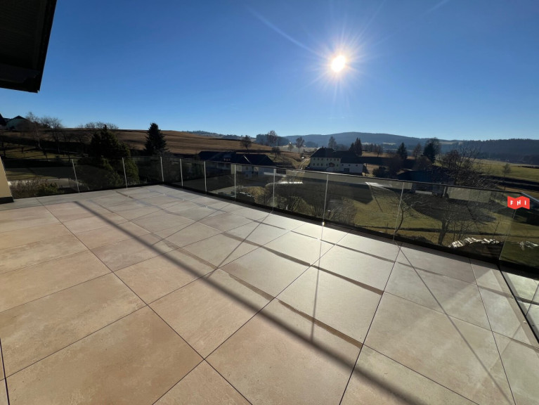 Sehr große Terrasse mit Glaselementen und traumhafter Fernsicht