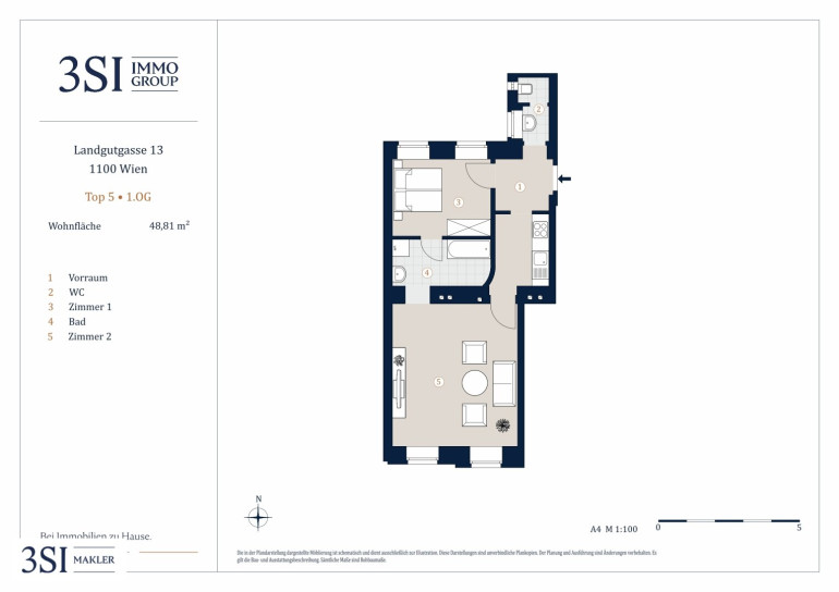 Diese teilmöblierte 2-Zimmer-Wohnung befindet sich im 1. Obergeschoss und bietet auf rund 49 m² Wohnfläche eine kompakte und gut durchdachte Raumaufteilung: