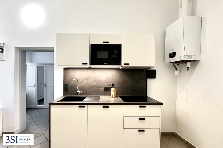 Diese teilmöblierte hofseitige 1-Zimmer-Wohnung befindet sich im Erdgeschoss und bietet auf rund 44 m² Wohnfläche eine kompakte und gut durchdachte Raumaufteilung: