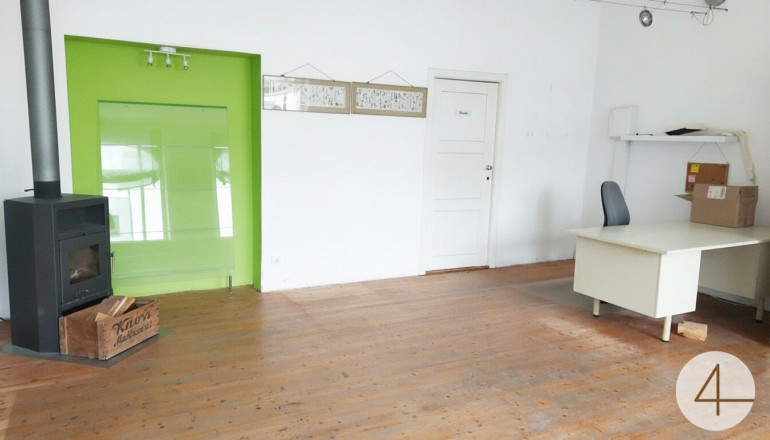 Top 1 ( 87m²) als Geschäftslokal: großer Verkaufsraum mit Schwedenofen, Lagerraum, ein weiterer Raum mit Ausgang auf den Balkon für wohlverdiente Pausen, Bad, WC, kleiner Abstellraum