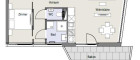 Die Wohnung hat knappe 44 m2 an Wohnfläche plus Balkon mit etwa. 11 m2 und befindet sich im ersten Stock.