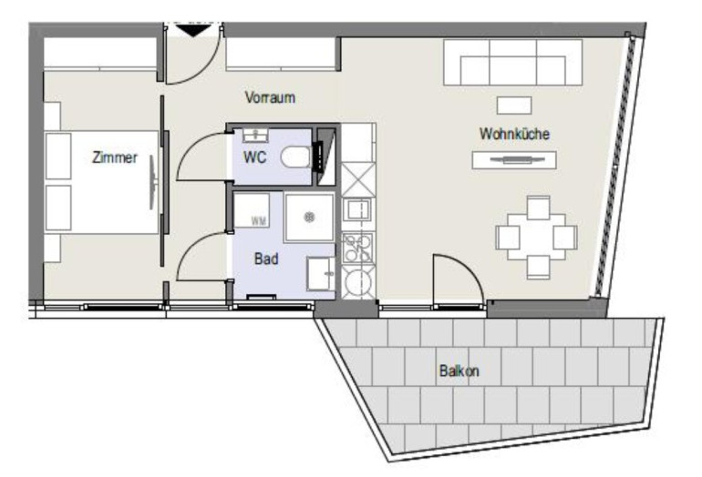Der Vorraum bietet genügend Platz für eine gemütliche Garderobe und leitet Sie gleichzeitig in alle Zimmer weiter. Auf der rechten Seite erwartet Sie das separate Schlafzimmer. Geradeaus führt der Gang in das Badezimmer, welches mit einer Dusche, einem Waschbecken und einem Waschmaschinenanschluss ausgestattet ist. Das WC mit extra Handwaschbecken liegt separat und befindet sich neben dem Bad. Nach links geht es in das Wohnzimmer inkl. einer neuwertigen Wohnküche mit jeglichen Geräten des täglichen Bedarfs.