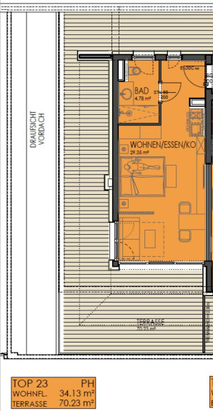 - Terrasse: ca. 70 m², südseitig mit Seeblick
